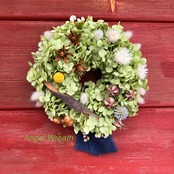さわやかなマスカットグリーンのアナベルをたっぷり使った小さめサイズの愛らしいリース。
