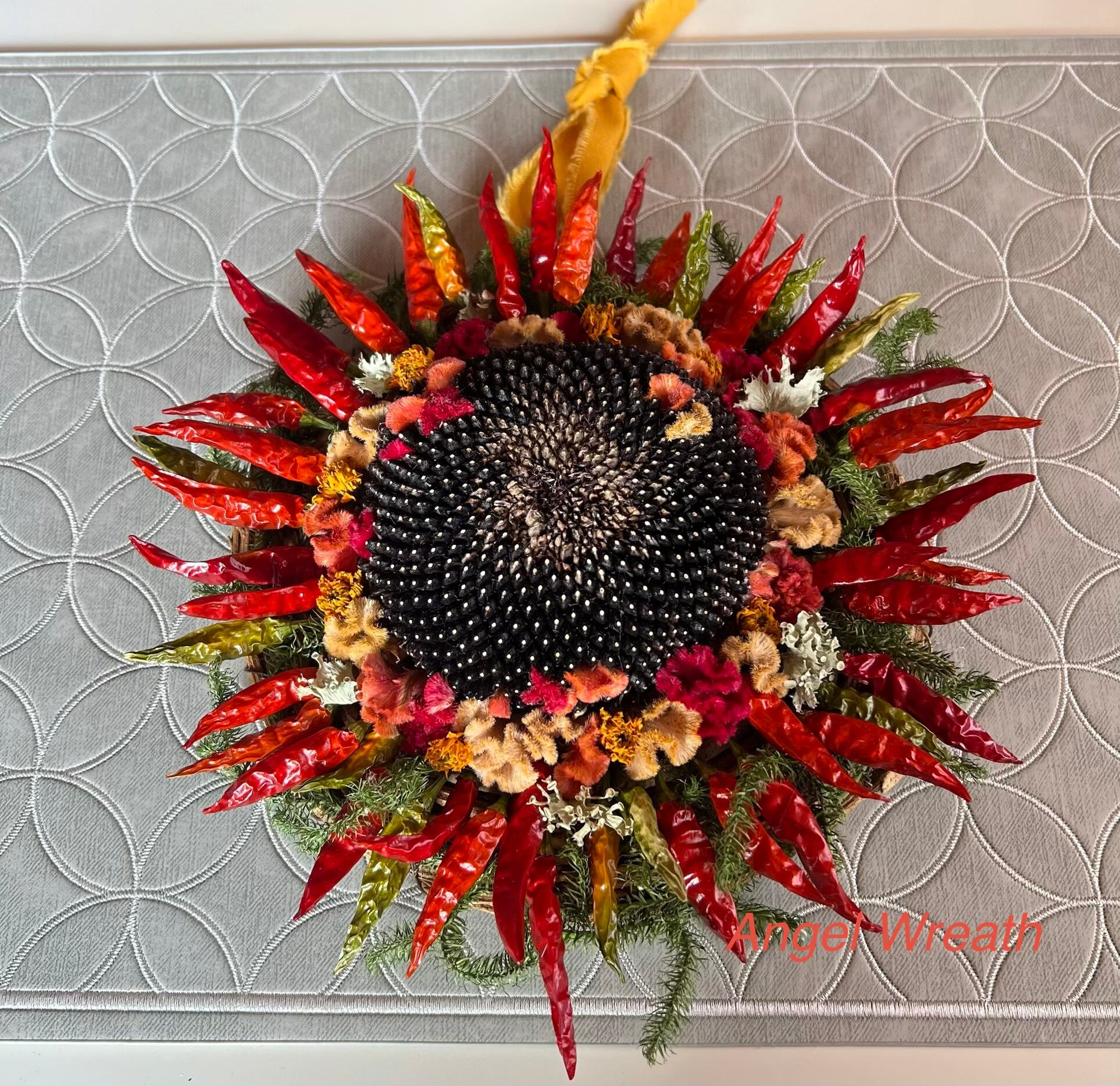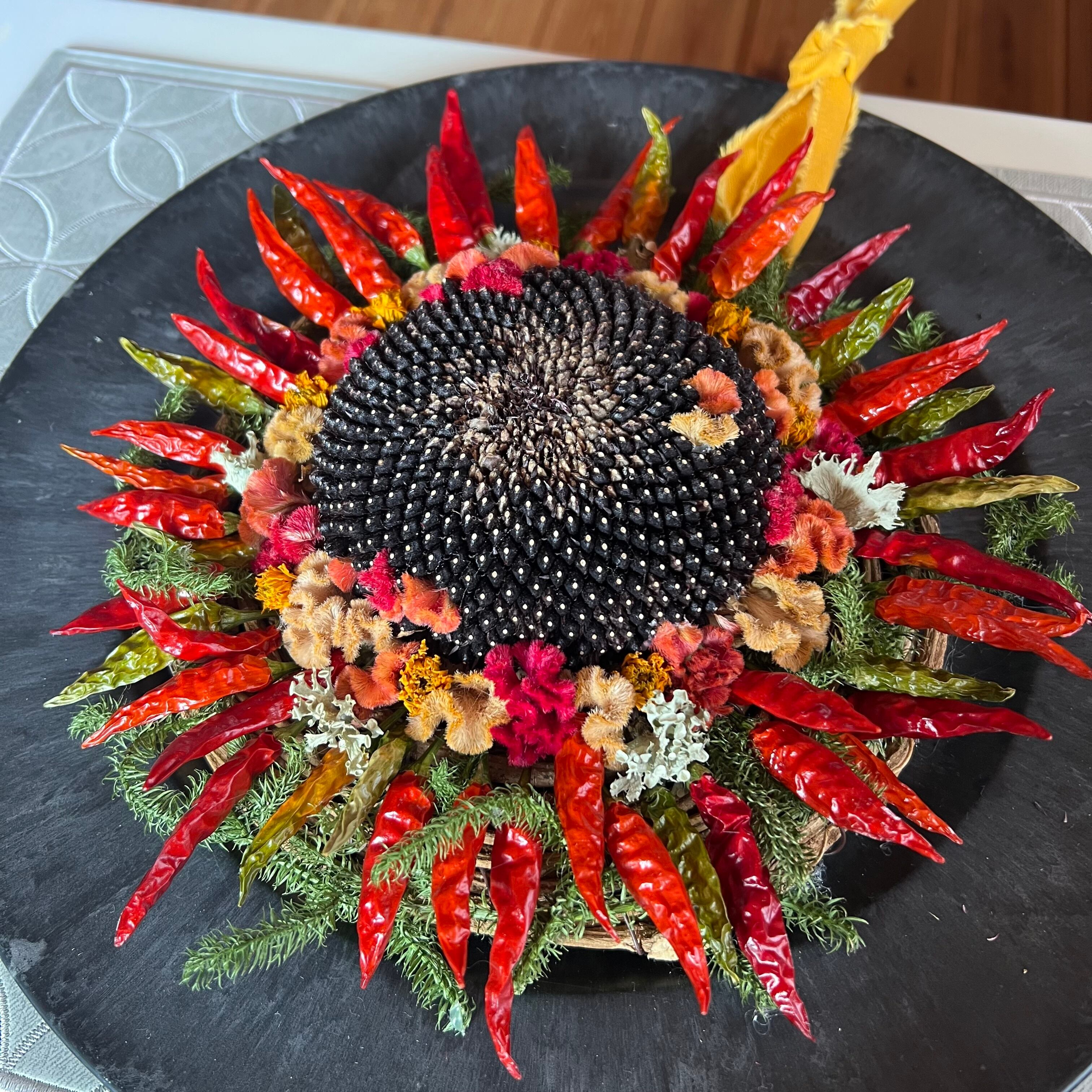 去年の夏の終わりに採取した見事なフィナボッチ数列の花後のひまわり