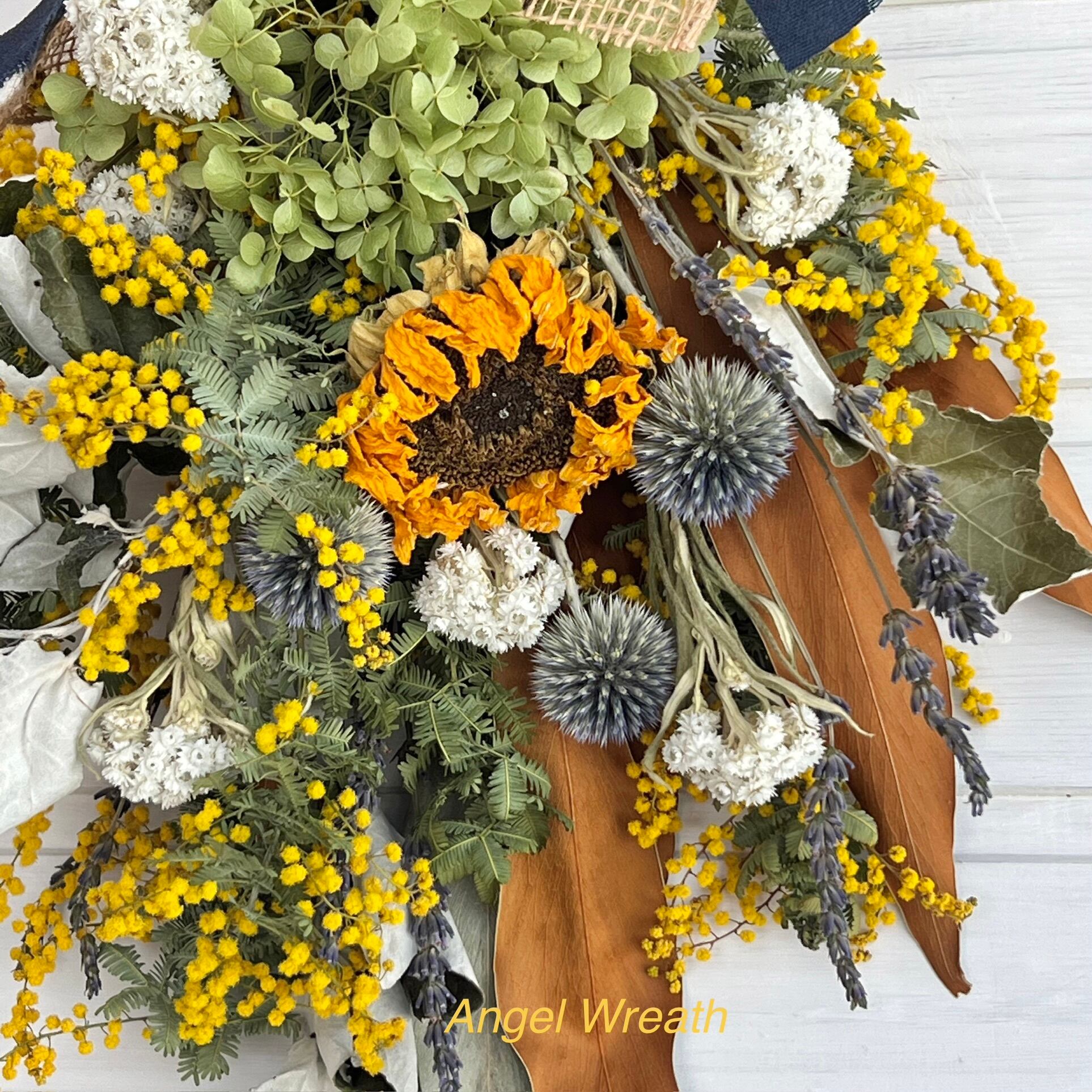 他に使っているドライフラワーは、ルリタマアザミ、グレビリア・ゴールド、ミナヅキ、ラベンダー、ヤマハハコ、ホワイトポプラなど。