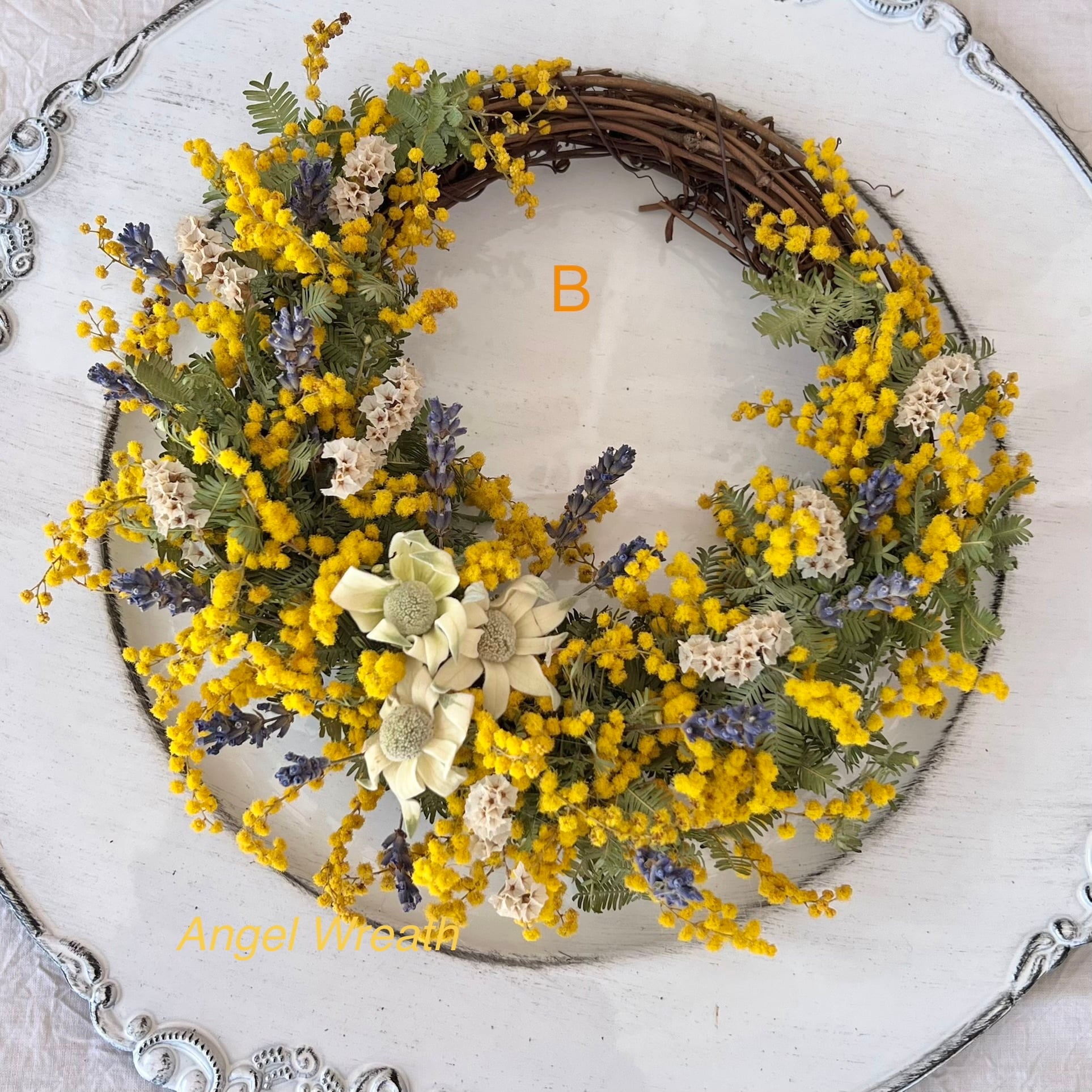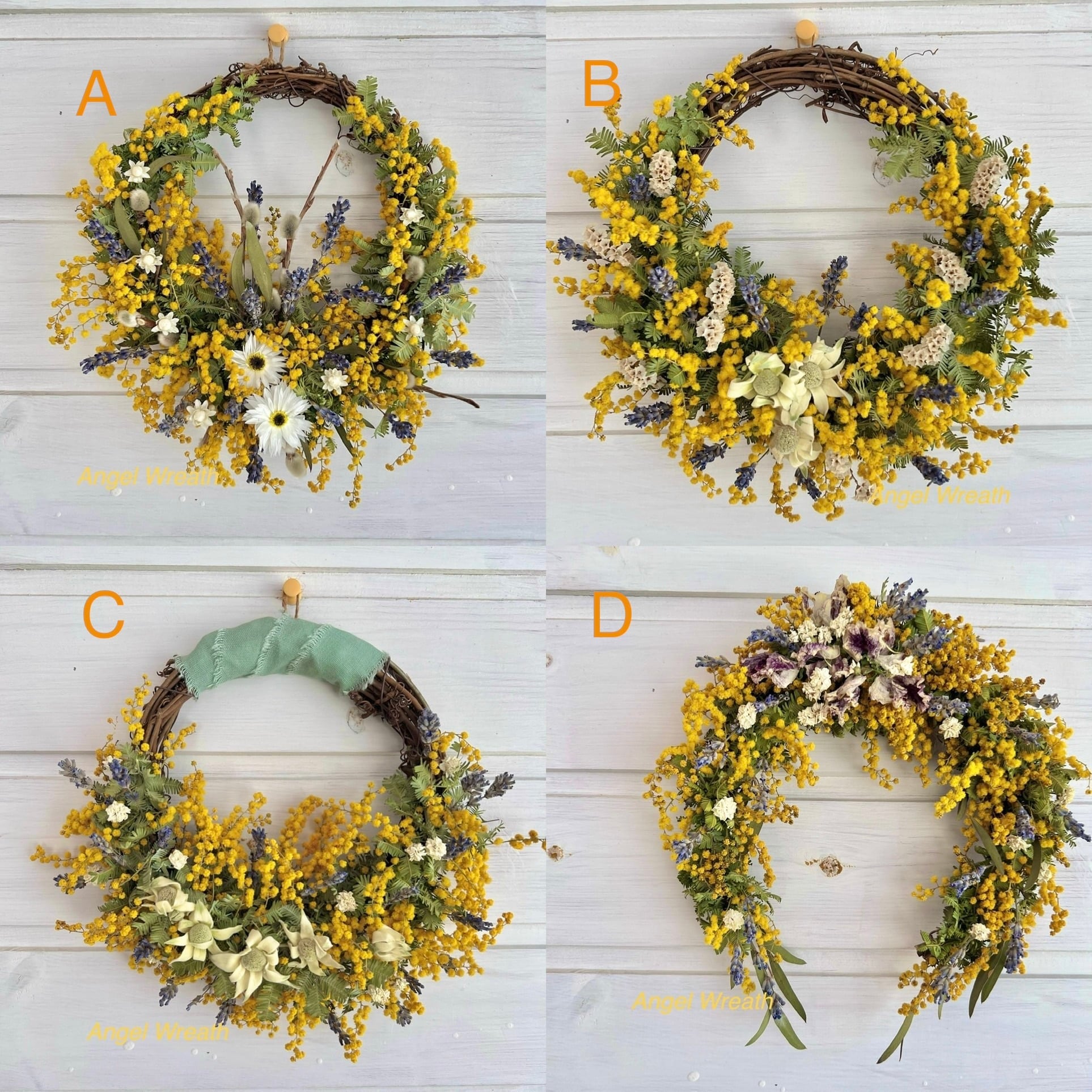 【母の日ギフトにも】ミモザとラベンダーのリース(20cm)